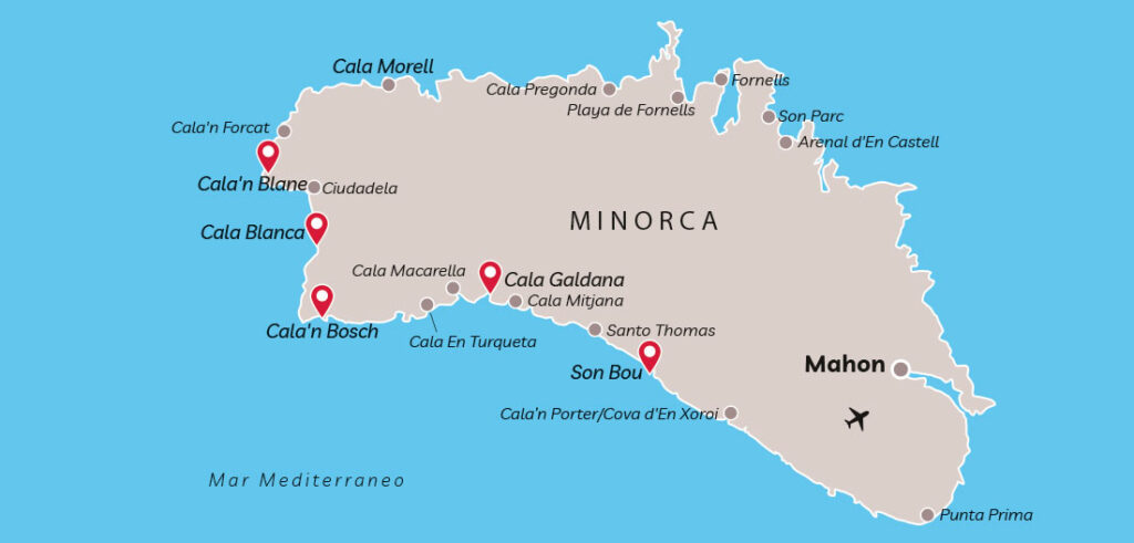 Le acque turchesi che bagnano la sabbia bianchissima e finissima hanno dato il nome a quella che è forse la spiaggia più bella dell’isola. Il livello di competizione delle spiagge e delle cale a Minorca è davvero altissimo. Non vi resta che visitarle tutte e fare la vostra personale classifica.