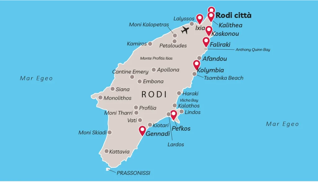 L’isola più grande del Dodecanneso, attira turisti e viaggiatori soprattutto per la sua varietà. Spiagge bellissime su acque del tutto trasparenti, vita notturna giovanissima ma anche più adulta e raffinata, siti archeologici che vanno dall’antica Grecia al periodo medievale, paesaggi bellissimi e opportunità sportive sterminate. Tutta da vivere.